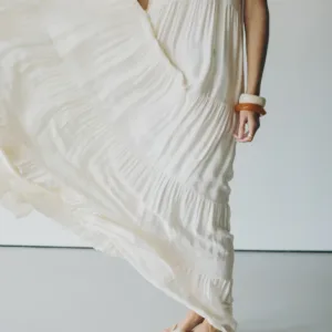 Be the first to review “Noelle Strappy Tiered Satin Maxi Dress | Ivory”